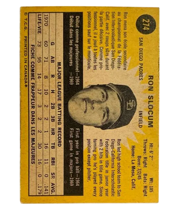 #274 Ron Slocum 1971 O-Pee-Chee
