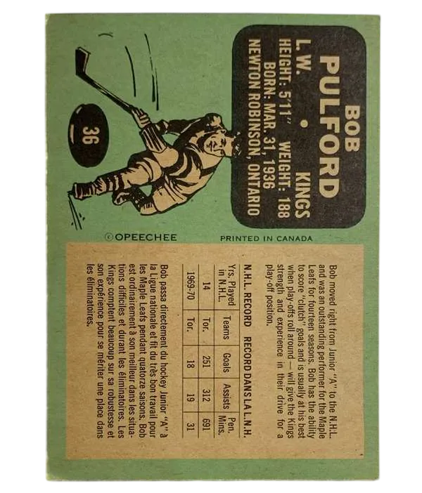 #36 Bob Pulford (EX) 1970-71 O-Pee-Chee