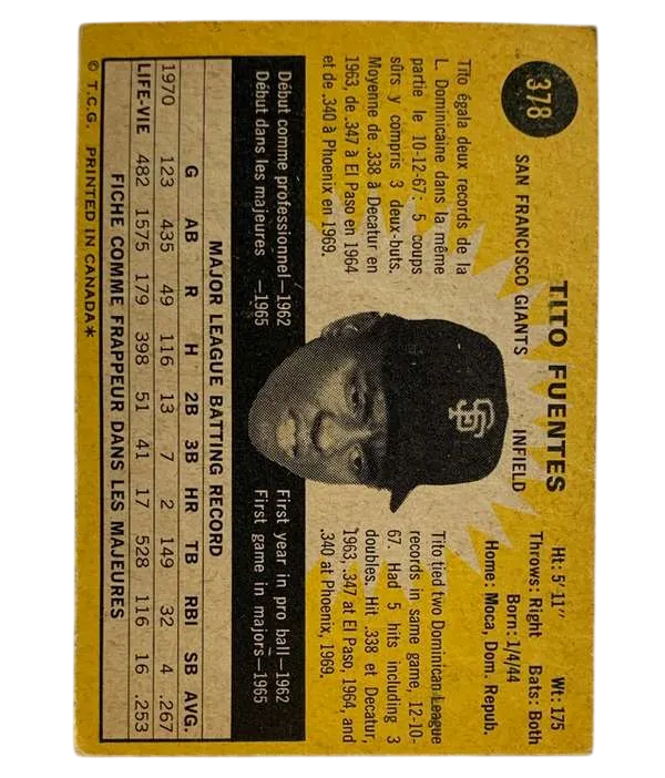 #378 Tito Fuentes 1971 O-Pee-Chee