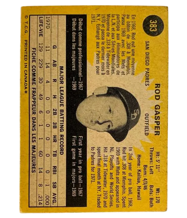 #383 Rod Gaspar 1971 O-Pee-Chee