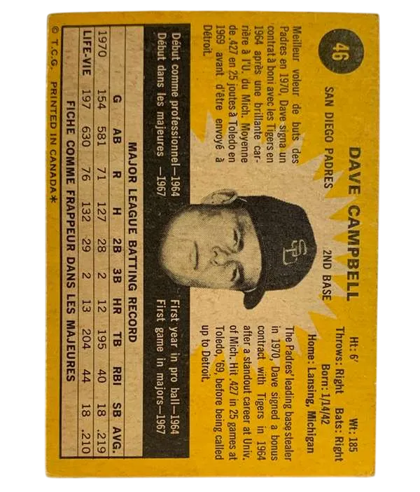 #46 Dave Campbell 1971 O-Pee-Chee