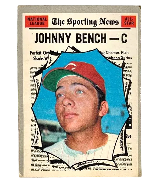 Capture a slice of baseball history with the 1970 O-Pee-Chee All Star Johnny Bench card, featuring the legendary Cincinnati Reds catcher. This card, numbered 464, is a treasured piece for any collector, showcasing the finesse and prowess of one of the game's icons.