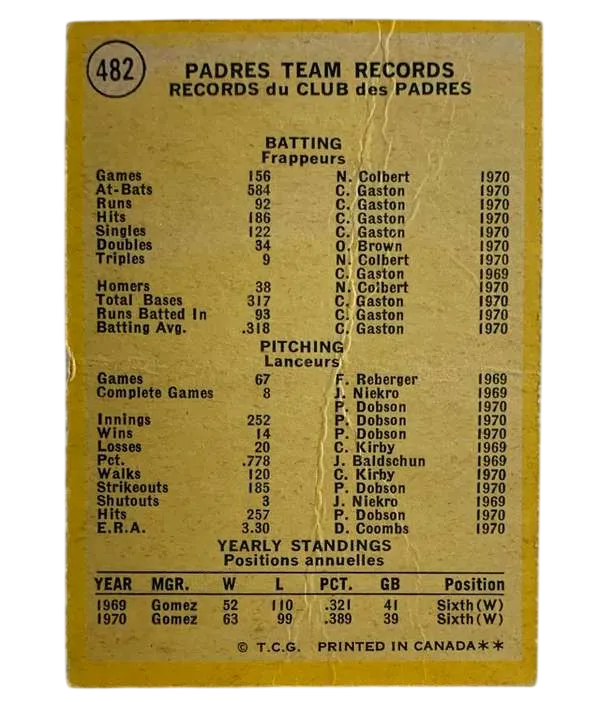 #482 San Diego Padres 1971 O-Pee-Chee