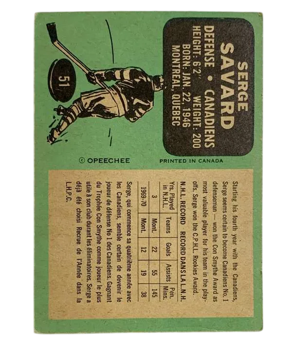 #51 Serge Savard (PR) 1970-71 O-Pee-Chee