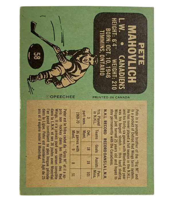 #58 Pete Mahovlich (EX) 1970-71 O-Pee-Chee
