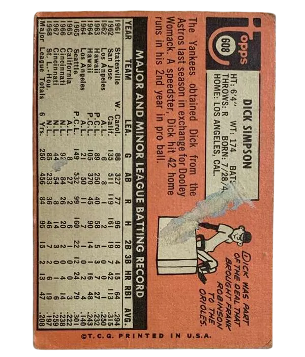 1 review for #608 Dick Simpson 1969 O-Pee-Chee