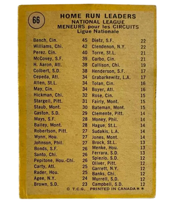 #66 1970 National League Home Run Leaders (Johnny Bench / Billy Williams / Tony Perez) LL 1971 O-Pee-Chee