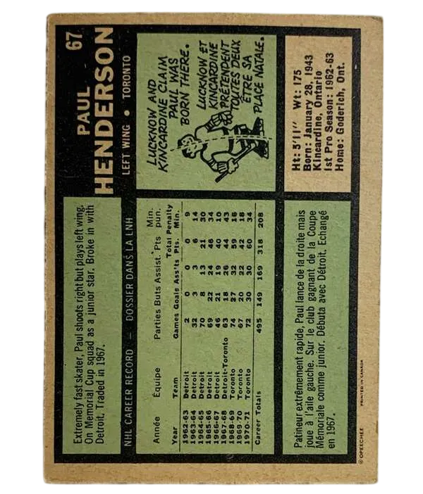 Be the first to review “#67 Paul Henderson (EX) 1971-72 O-Pee-Chee”
