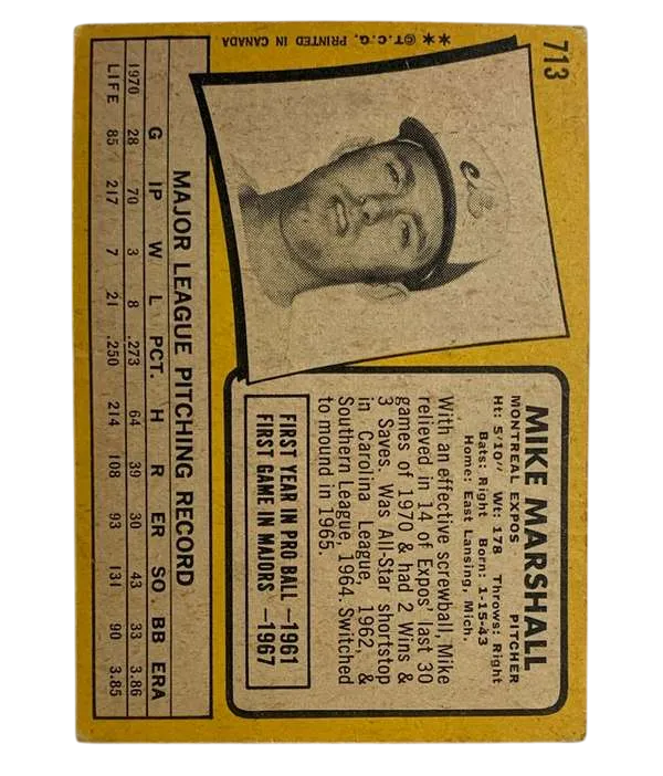 SOLD #713 Mike Marshall 1970-71 Topps