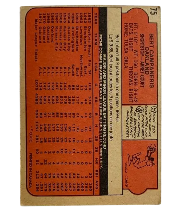 #75 Bert Campaneris 1972 O-Pee-Chee