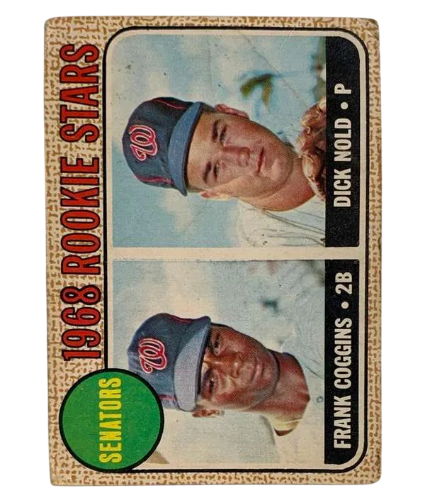 Discover a piece of baseball history with the #96 Senators 1968 Rookie Stars baseball card, featuring Frank Coggins and Dick Nold. This original O-Pee-Chee card hails from the 1968 season, capturing the essence of a bygone era in the sport. As a vintage collectible from Canada, it's an essential addition for enthusiasts seeking to commemorate the Major League Baseball legacy of the Washington Senators.