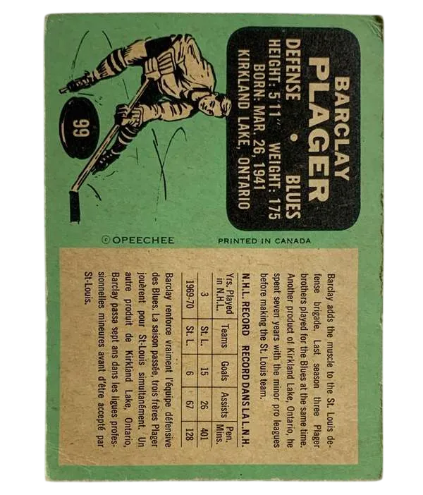 #99 Barclay Plager (EX) 1970-71 O-Pee-Chee