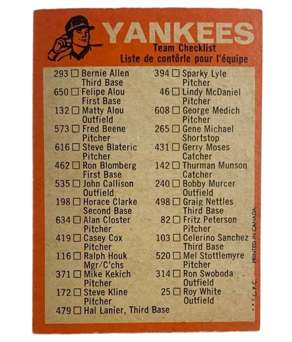 New York Yankees 1973 O-Pee-Chee – Blue-Team-Checklists