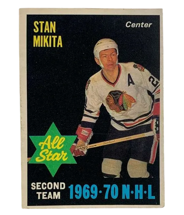 Capture a piece of hockey history with this authentic 1970-71 O-Pee-Chee Hockey Card featuring the legendary Stan Mikita. Card number 240A showcases Mikita in his prime with the Chicago Blackhawks, a must-have for fans and collectors alike. This original card, hailing from the 1970 season, is a vintage treasure from the National Hockey League's storied past.